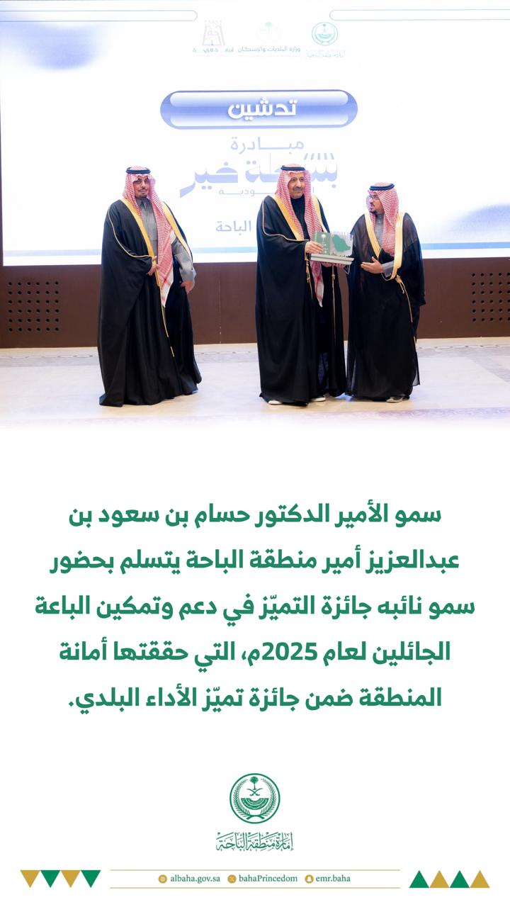 سمو أمير الباحة يتسلّم جائزة التميّز لأمانة المنطقة في دعم وتمكين الباعة الجائلين