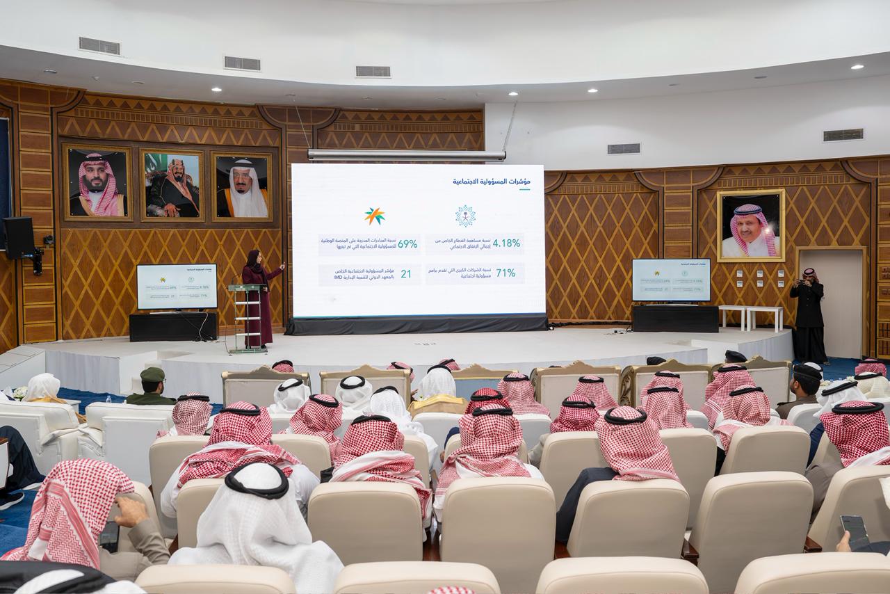وهدف الملتقى إلى تعزيز مفاهيم المسؤولية الاجتماعية، وترسيخ دور القطاع الخاص في دعم التنمية المستدامة، وبناء شراكات فاعلة بين الجهات الحكومية والشركات ومؤسسات القطاع الخاص، بما يسهم في تنمية المجتمع المحلي وتحقيق مستهدفات رؤية المملكة 2030.