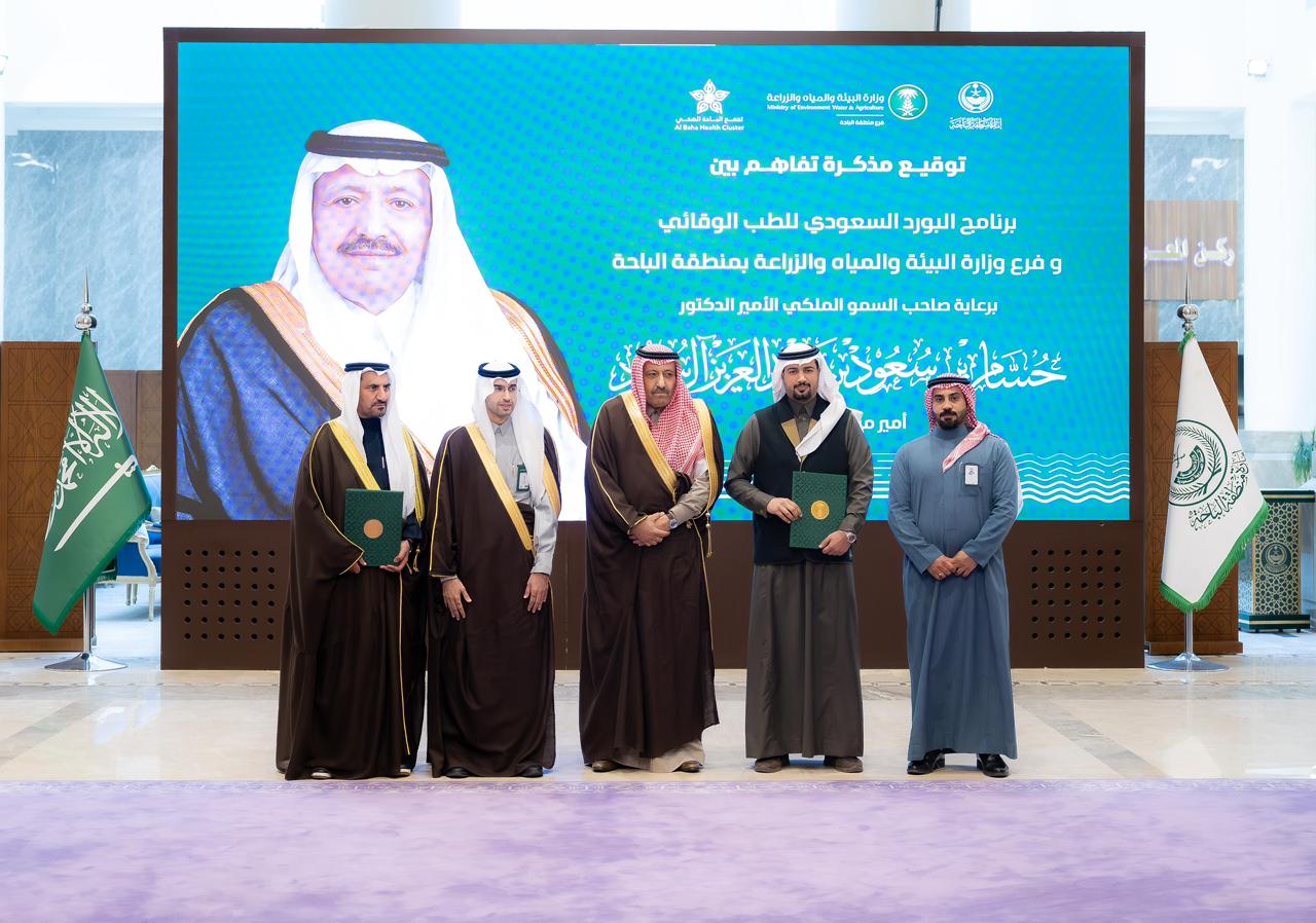وخلال الاستقبال ، جرى توقيع مذكرة تفاهم بين برنامج البورد السعودي للطب الوقائي ، مثّله الدكتور علي آل منصور ، وفرع وزارة البيئة والمياه والزراعة بمنطقة الباحة ، مثّله مدير عام فرع الوزارة بالمنطقة المهندس فهد مفتاح الزهراني.