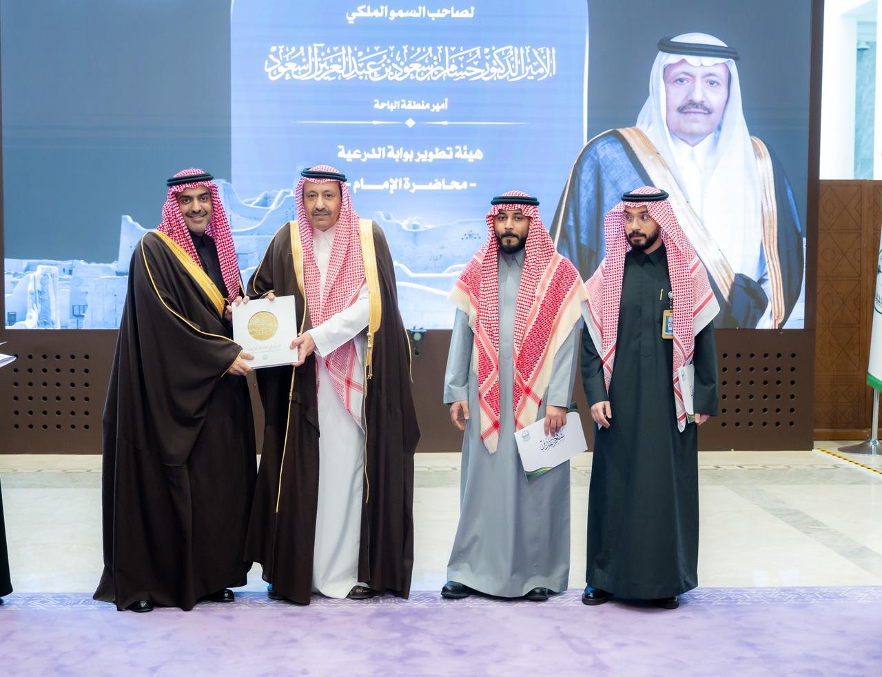 رعى صاحب السمو الملكي الأمير الدكتور حسام بن سعود بن عبدالعزيز آل سعود، أمير منطقة الباحة، محاضرة «الإمام» التي أقامتها إمارة المنطقة بالتعاون مع هيئة تطوير بوابة الدرعية، وذلك بالتزامن مع مناسبة يوم التأسيس في ديوان الإمارة، بحضور مديري الإدارات الحكومية والقطاعات العسكرية، ومنسوبي الإمارة، وعددٍ من المواطنين.