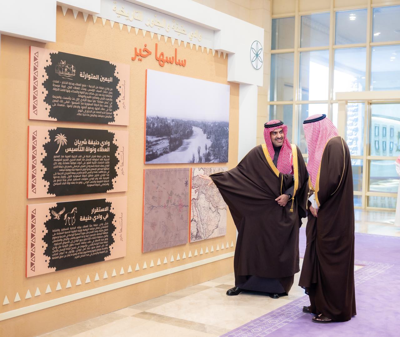 وعلى هامش المناسبة، اطّلع سموه على المعرض المصاحب الذي نظمته هيئة تطوير بوابة الدرعية بعنوان «الدرعية واليمين المتوارثة في تاريخنا السعودي»، متضمنًا استعراضًا للأبعاد التاريخية والجغرافية لوادي حنيفة والدرعية، وقراءةً في إنجازات أئمة الدولة السعودية الأولى، مبرزًا الأسس المتينة التي قامت عليها الدولة، التي ما تزال تمثل جوهر الهوية الوطنية ومسيرة الوطن المجيدة.