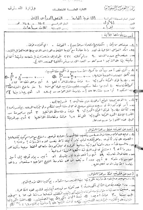 في النماذج المرفقة نشاهد كثرة الأسئلة المقالية وأيضاً تضمين السؤال أكثر من فقرة إذ تعتمد على التفسير والاستنتاج بحيث تعتمد الفقرة الثانية على حل الفقرة الأولى وهكذا تباعاً. هذه النماذج من محفوظ التراث لدينا منذ ذلك العام 1404هـ تجاوزناها بنجاح.